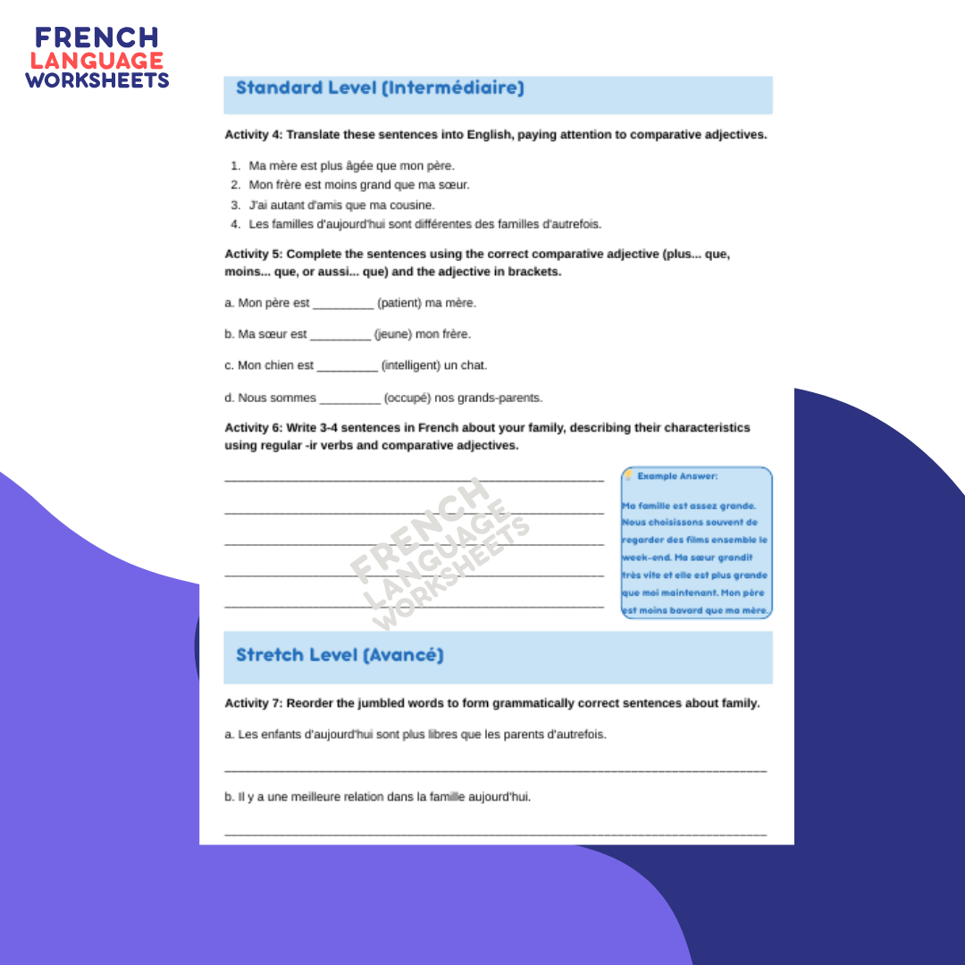 Perfect for covering the ‘Les familles de nos jours’ section of the AQA French course, this worksheet encourages meaningful practice and deeper cultural understanding.